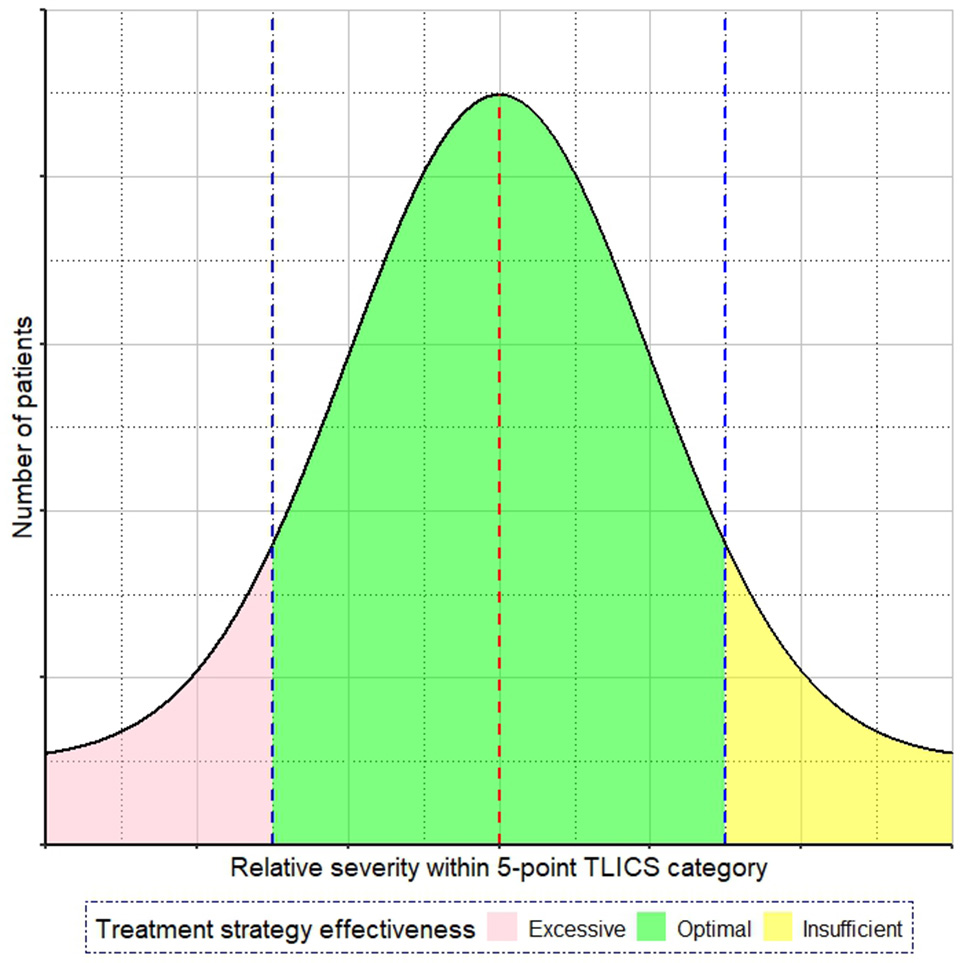However, in real-world clinical practice, individual patient characteristics often diverge significantly from the conditional "average." As we move away from the center of the Gaussian curve in either direction, we encounter scenarios that are not fully accounted for by standard protocols. Patients in the "right tail" of the distribution may find that the universal protocol is insufficiently effective or surgically aggressive, leading to underestimation of disease severity and, consequently, inadequate treatment. An example would be the use of short-segment fixation for TSI at the thoracolumbar junction, which often results in construct failure and pseudarthrosis [59]. Conversely, patients in the "left tail" may receive overtreatment. For instance, successful conservative management of type A4 fractures has been documented in specific patient populations. Clearly, performing surgery when it could be avoided not only increases the risk of complications but is also economically unjustified [60]. It is logical that, further along the abscissa axis to the right, another cohort of A4 fracture patients—those whose disease severity is explicitly accounted for in clinical protocols, such as those with neurological deficits—requires a different therapeutic approach, namely decompression combined with stabilization.