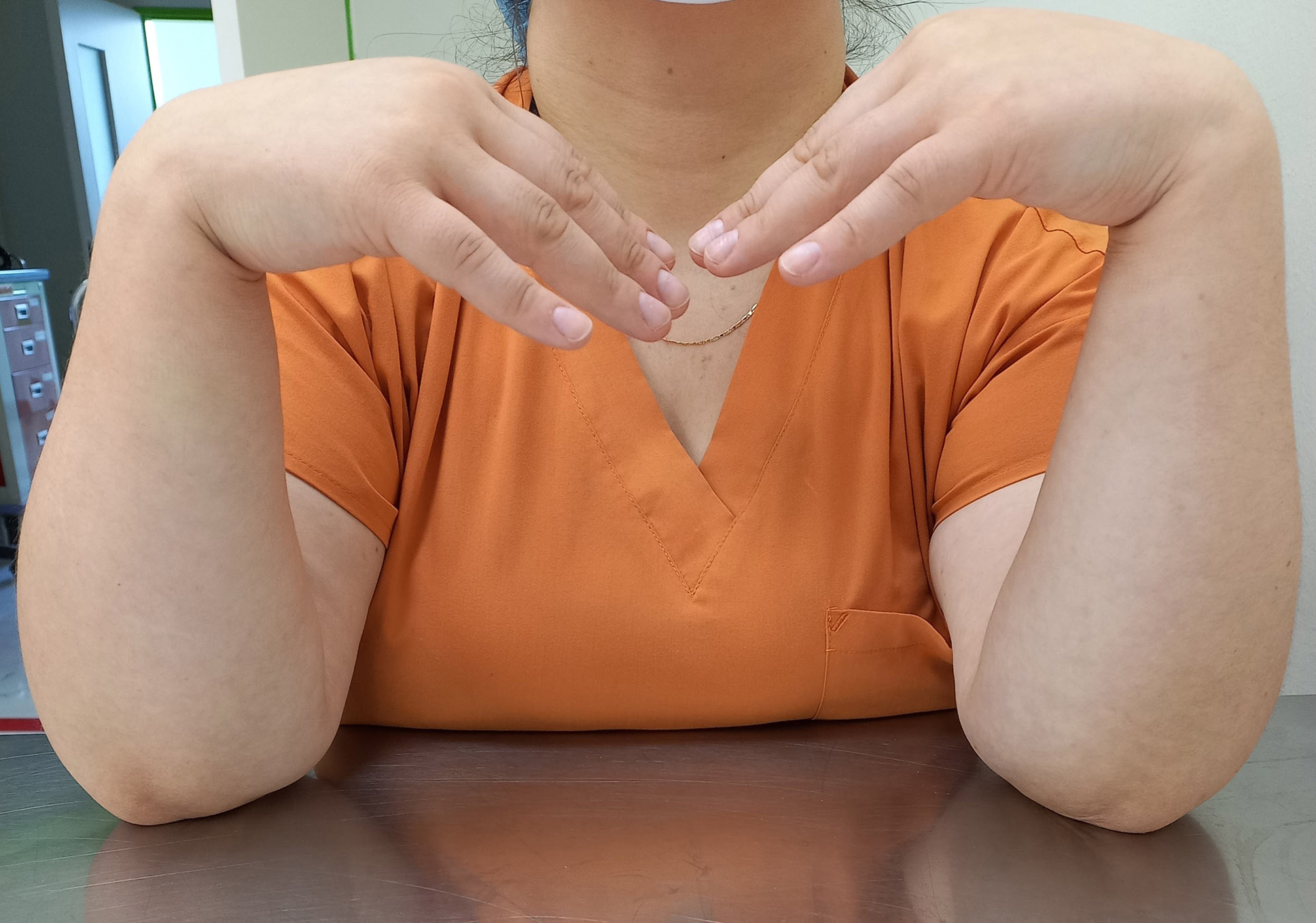 The technique for performing the classic Phalen test was as follows. The subject was asked to place their flexed elbow joints on the table so that their forearms were in a vertical position. Under the influence of gravity, the hands were flexed maximally, with the fingers remaining extended (Fig. 1). This position was maintained for 1 minute. If signs of median nerve compression (numbness, paresthesia, pain in all 3.5 radial fingers or in some of them) appear during this time, the test was considered positive. In the absence of any clinical manifestations of CTS, the test was considered negative [10].