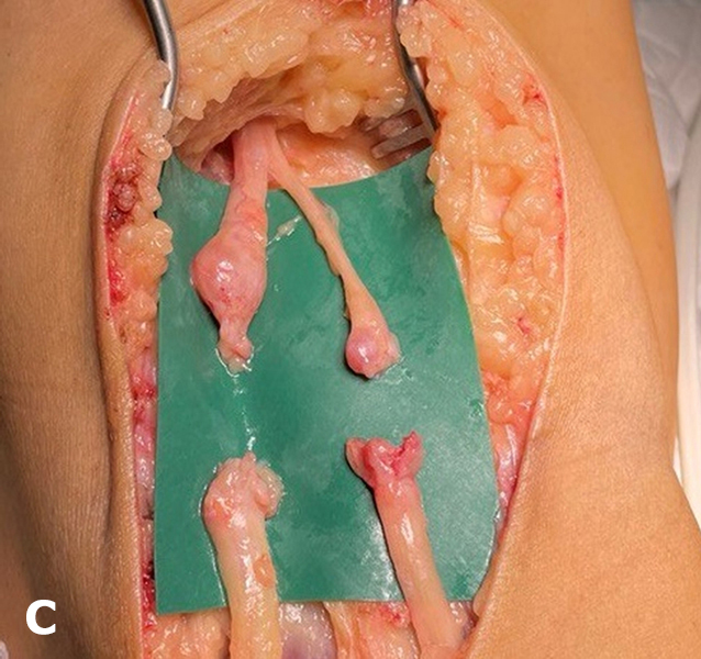 In all patients undergoing peripheral nerve surgery, lipofilling was performed using a mixture of aspirated subcutaneous adipose tissue and red bone marrow to restore the paraneural adipose cuff.
