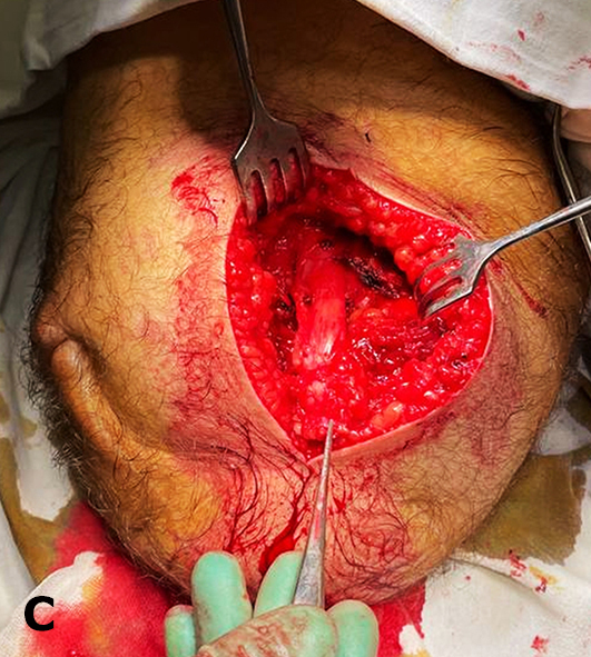 The primary conservative treatment group comprised 265 patients (246 men and 19 women; mean age 35.2 ± 6.5 years). In this cohort, conservative pain management strategies were employed, including medications containing the active substances lornoxicam, pregabalin, and antidepressants from the class of serotonin–norepinephrine reuptake inhibitors. Ultrasound-guided nerve hydrodissection was performed in cases where fibrotic tissue surrounded the nerve but did not preclude its visualization. Additional interventions included the administration of steroidal anti-inflammatory agents, platelet-rich plasma (prepared with a predominance of anti-inflammatory factors), and botulinum toxin. In the absence of a satisfactory response to conservative therapy (40 cases; 15.1%), patients were recommended for appropriate surgical intervention.